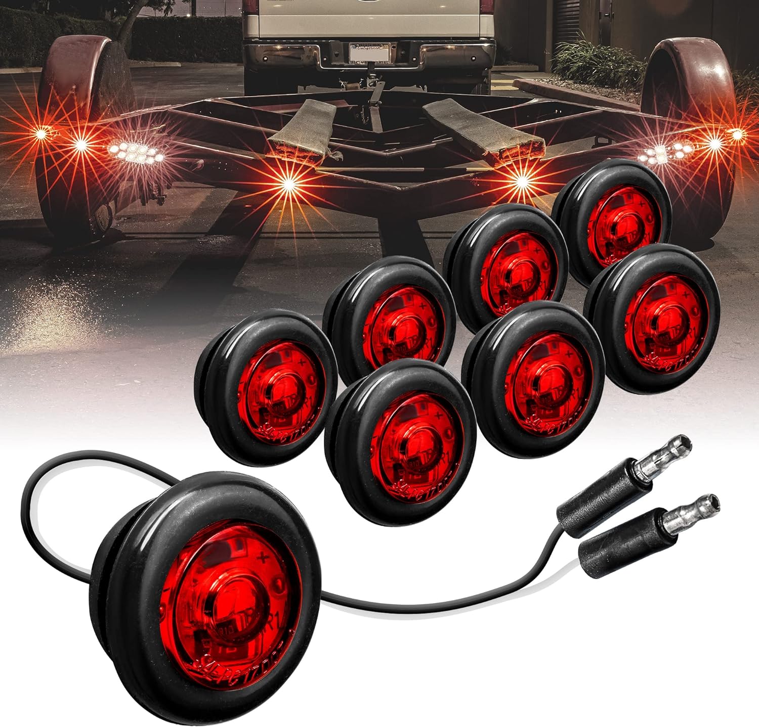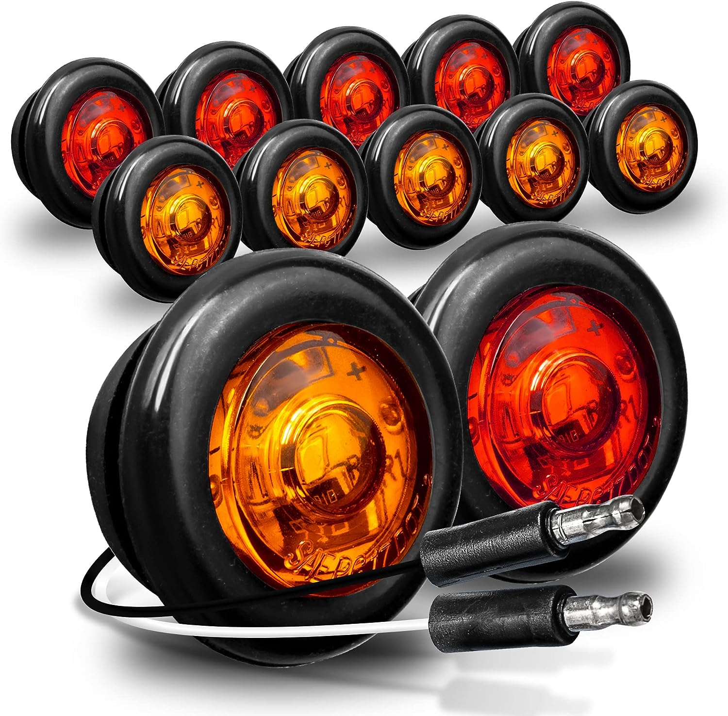 TRUE MODS 10pc 3/4" Round Amber Trailer LED Marker Light [3 Wire/DRL & Turn Signal] [DOT FMVSS 108] [SAE P2PC] [Semi-Spherical Output] [IP67 Waterproof] Round Marker Lights for Trailer Truck