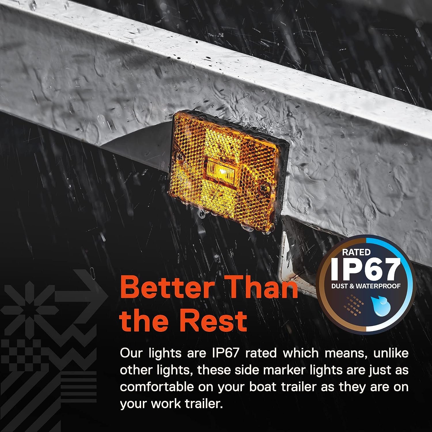 • BETTER THAN THE REST - Our lights are IP67 rated which means, unlike other lights, these side marker lights are just as comfortable on your boat trailer as they are on your work trailer.