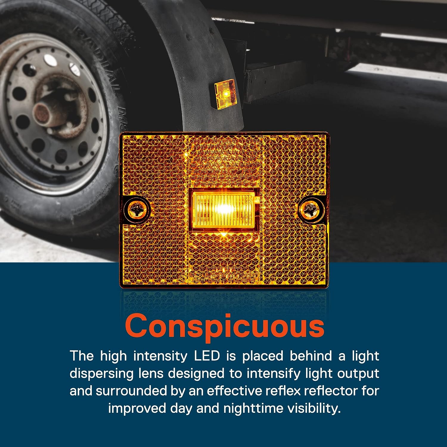 TRUE MODS 2pc Amber LED Side Marker Light [DOT Certified] [IP67 Waterproof] [ Integrated Reflector] for Utility Boat Trailers Over 80" Camper RV Clearance Light