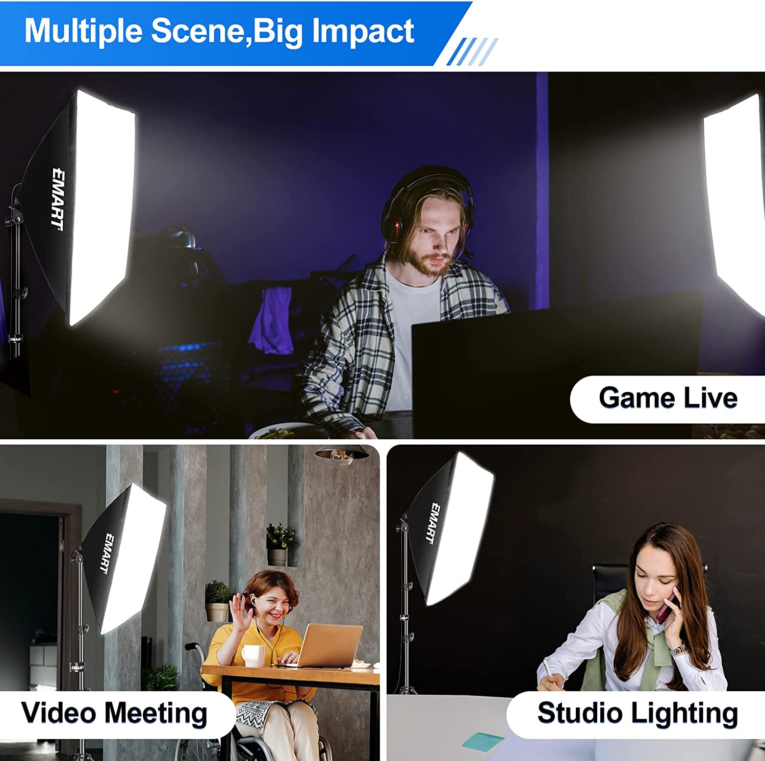 • [Multiple scene applications]This softbox light kit is suitable for photography art,and meets the different needs of photography lighting,live broadcasting,video fill light,etc.It can be applied to advertising products,industrial technology photography,portraits and product photography,photographic reproduction,etc