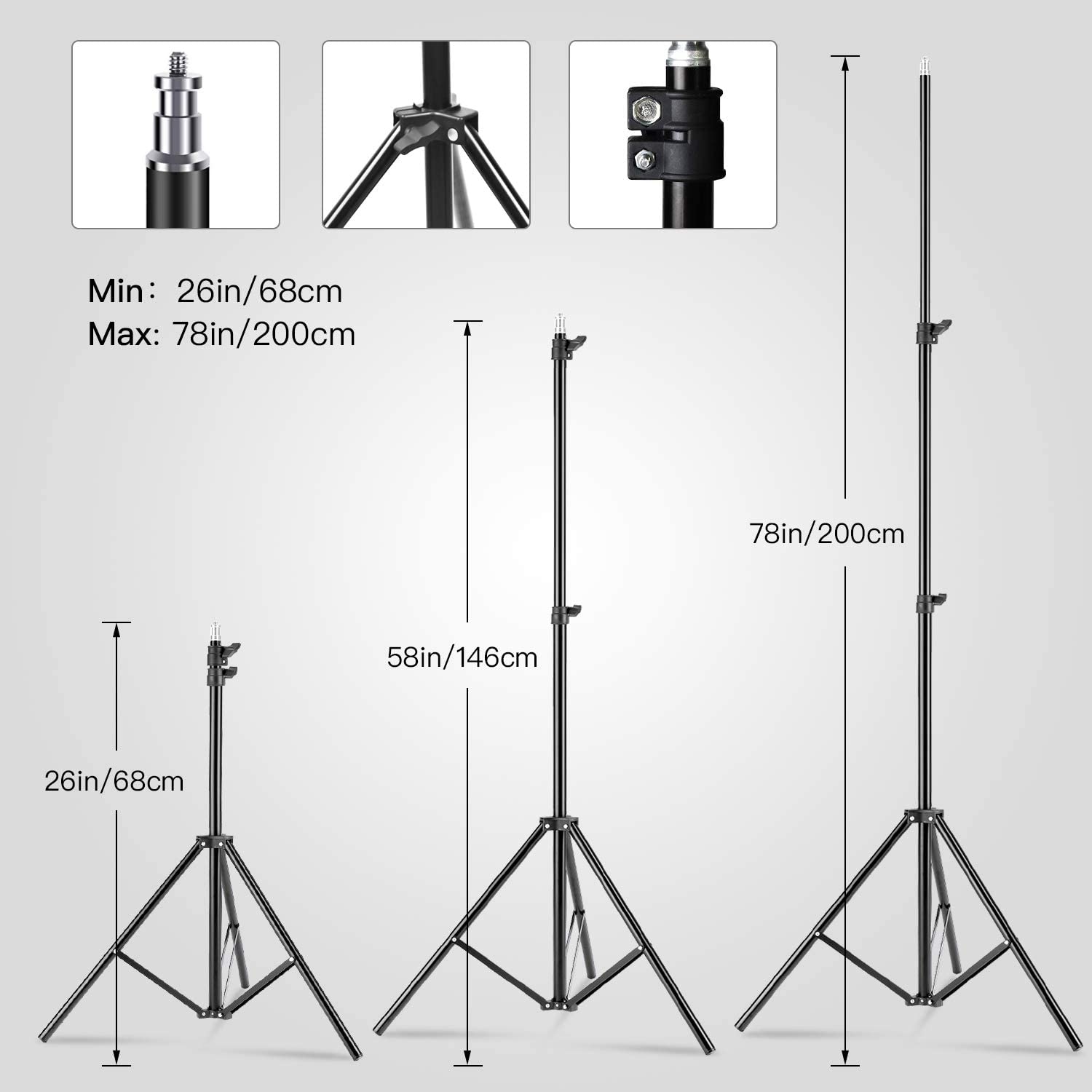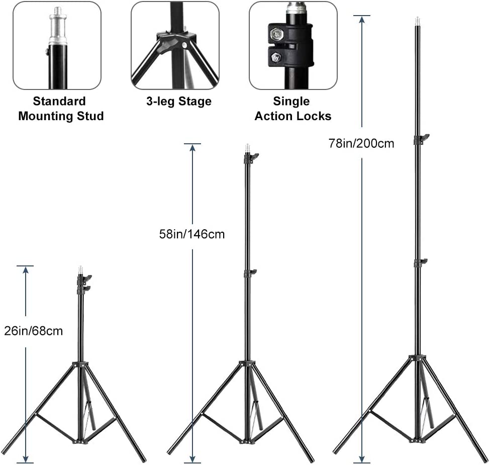 • 【210°Rotatable Head & Adjustable Stand】The studio soft box has an independent locking knob, which can be rotated 210° to adapt to different angles. The top is equipped with 1/4 screw mounting, and the tripod bracket with 3-section column design can extend from 26 inches to 78 inches.
