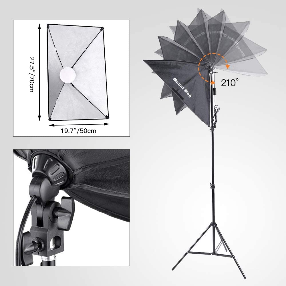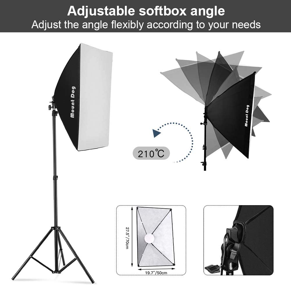 MOUNTDOG Softbox Lighting Kit, 2x19.7"x27.5" Photography Continuous Lighting System with 2pcs 85W 5700K E27 Socket LED Bulbs and Remote for Portrait Product Fashion Photography
