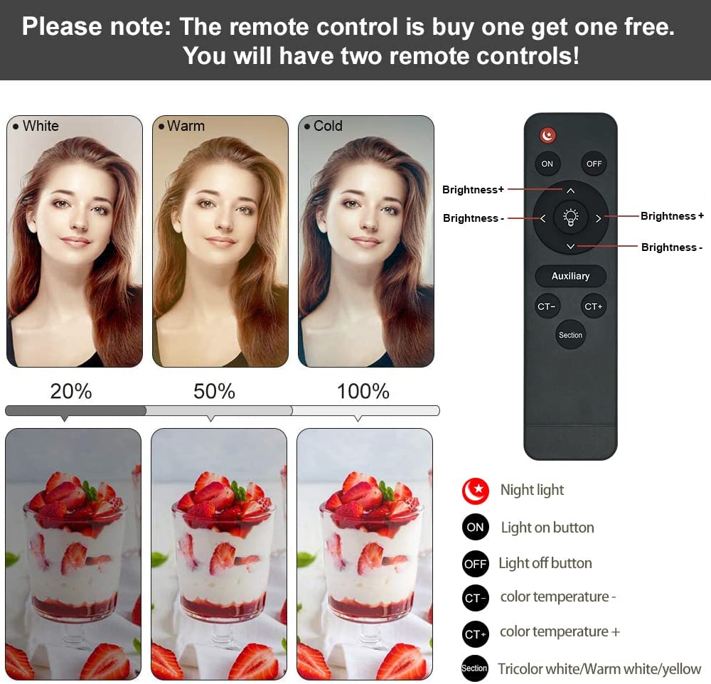 • 【2x Remote Control】 You can turn on and adjust the brightness and color temperature of the softbox lighting via the remote control. Please note that the soft box can be easily adjusted without being too close to the soft box. In addition, if you buy the softbox kit, we will give an additional remote control in case one of the remote controls is broken.