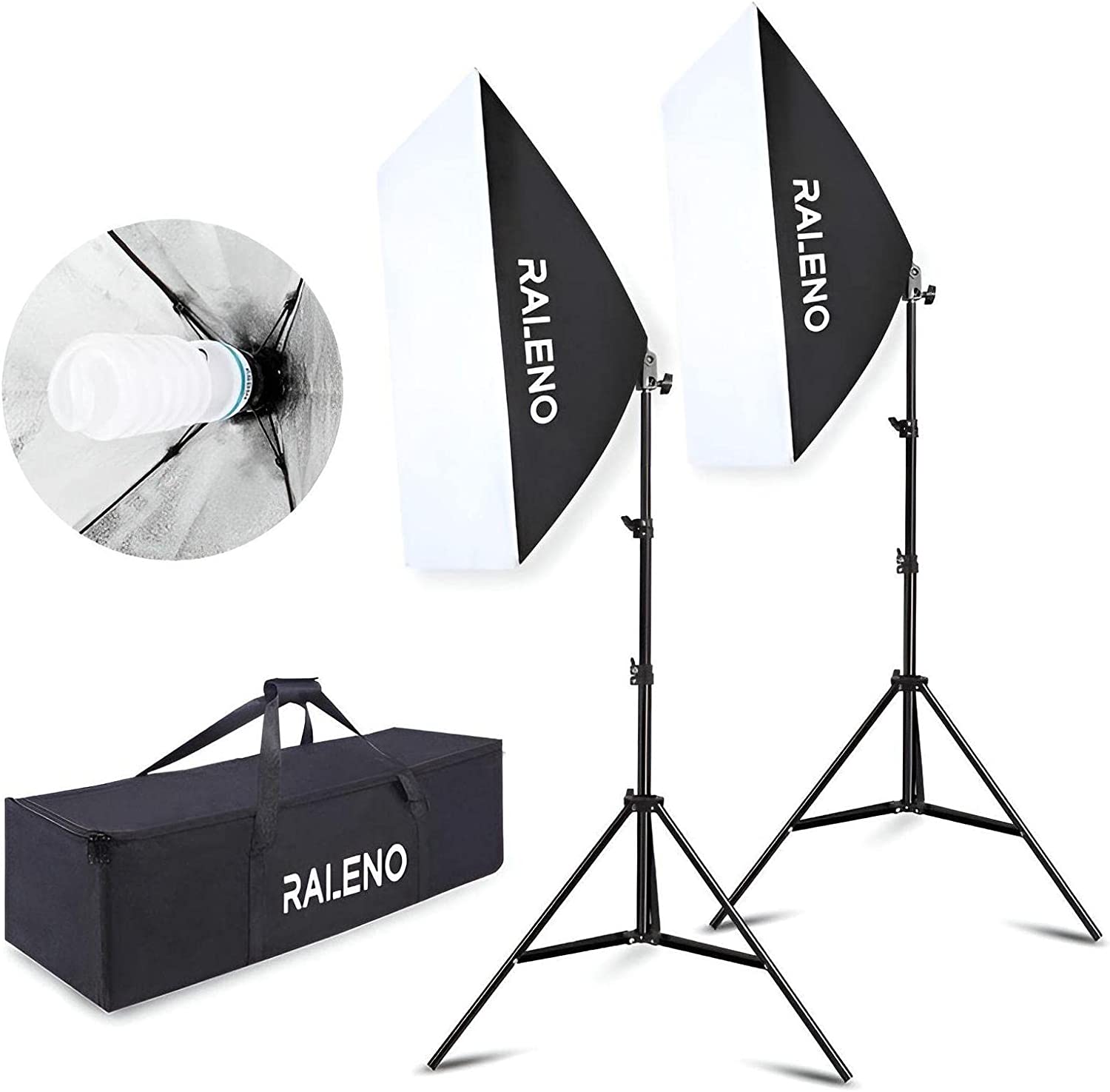 • RICH PACKAGING CONTENT 2 x 20 x 28 softbox window; 2 x E27 5500K 85W 110V CFL bulb; 2 x 27 - 80 height-adjustable light stand; 1 x portable tote from Oxford cloth. Raleno worry-free 365 days warm services and lifetime customer service: if you have any questions about our products, please contact us, we will reply you within 24 hours