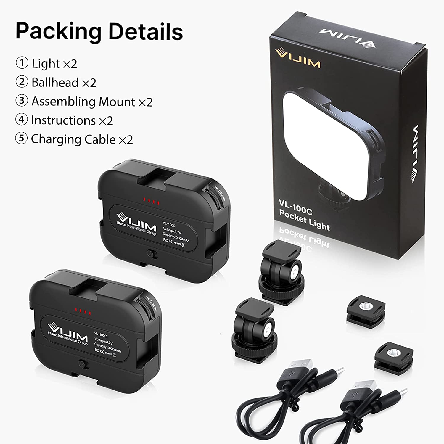 VIJIM VL100C Bi-Color LED Video Light on Camera,Mini Rechargeable 2000mAh LED Camera Lights,CRI95+ Dimmable 2500-6500K Ultra Bright Photo and Video Lighting,LED Fill Lamp…
