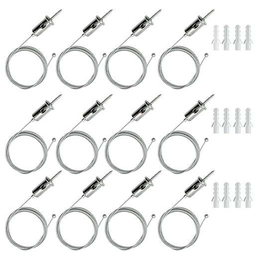 12 Sets Hexagon Garage Lights Suspension Cables Kit Steel Hanging Chains 3.28ft, Hex Honeycomb Light Connectors Pendant Light Wire Rope Cable Heavy Duty Chandelier Wire Adjustable (1m 12pcs)