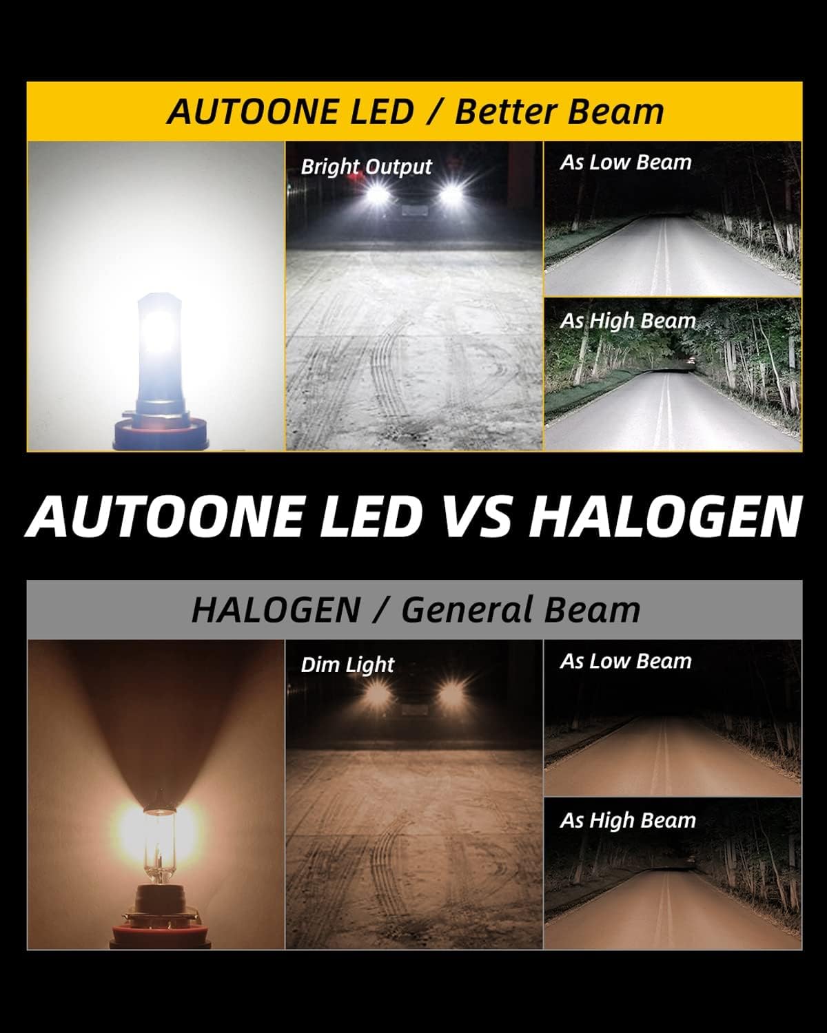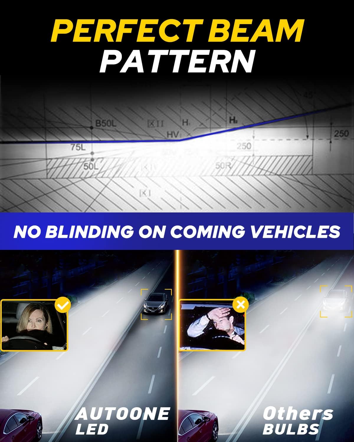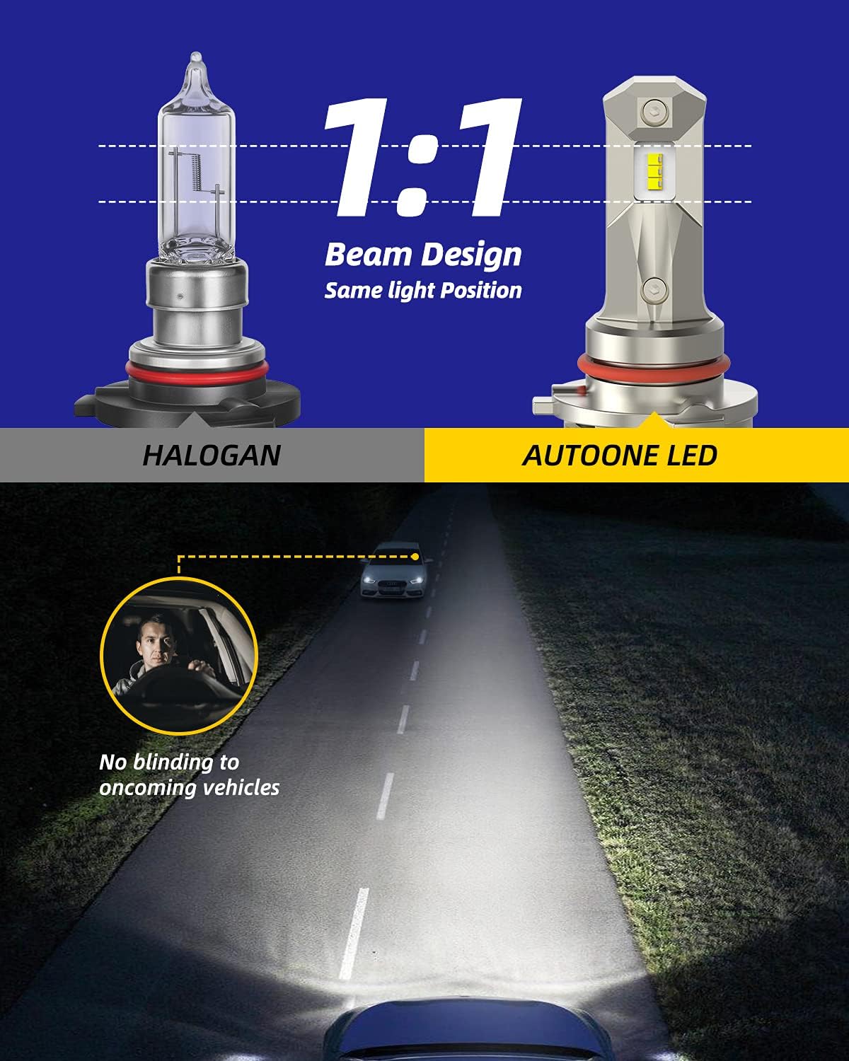 • PERFECT BEAM PATTERN: AUTOONE LED bulbs uses a 1:1 halogen beam design and ultra-thin chip copper plate, ensuring the same uniform light as the halogen bulbs. 360° lighting always be ready, no glare to oncoming traffic.