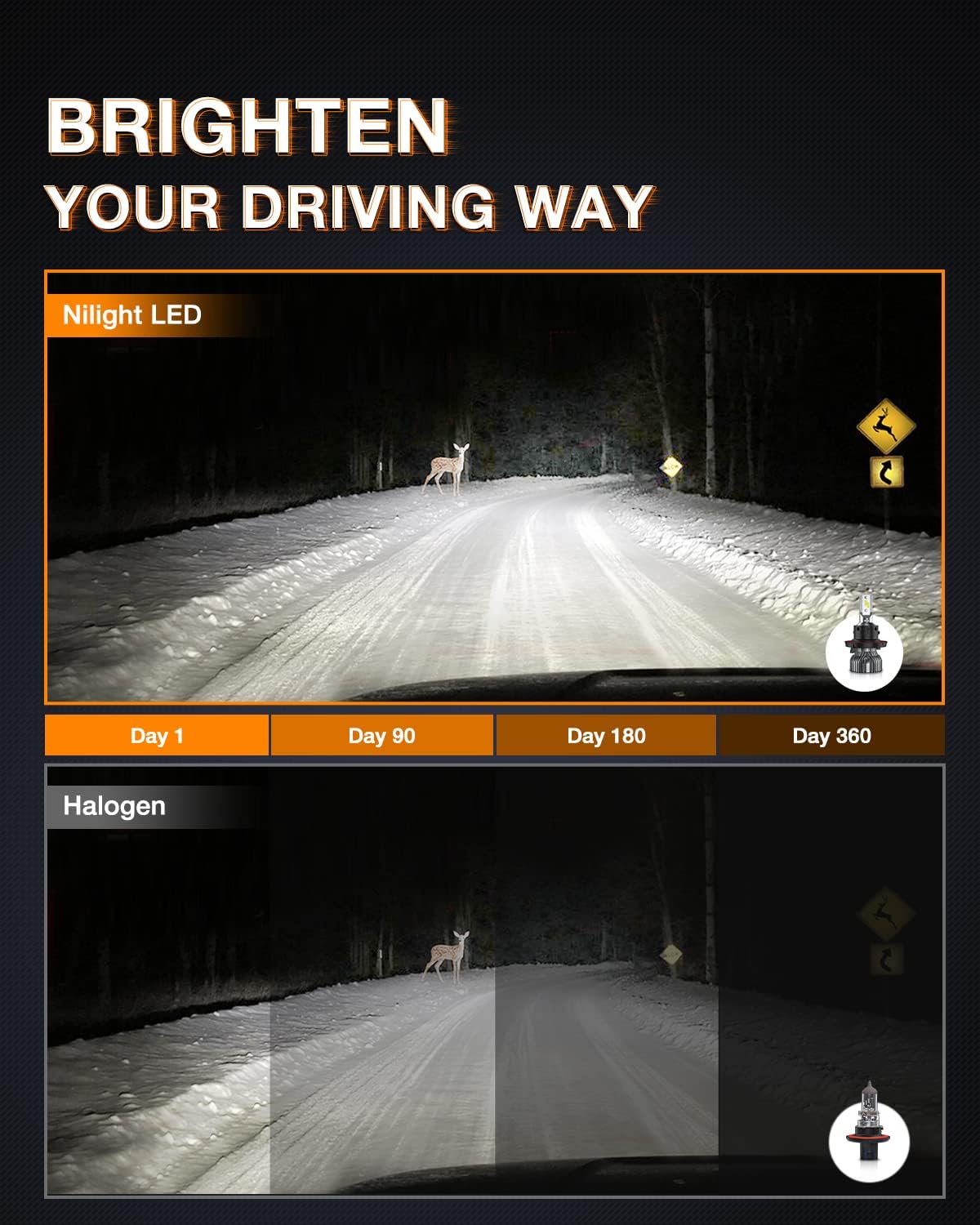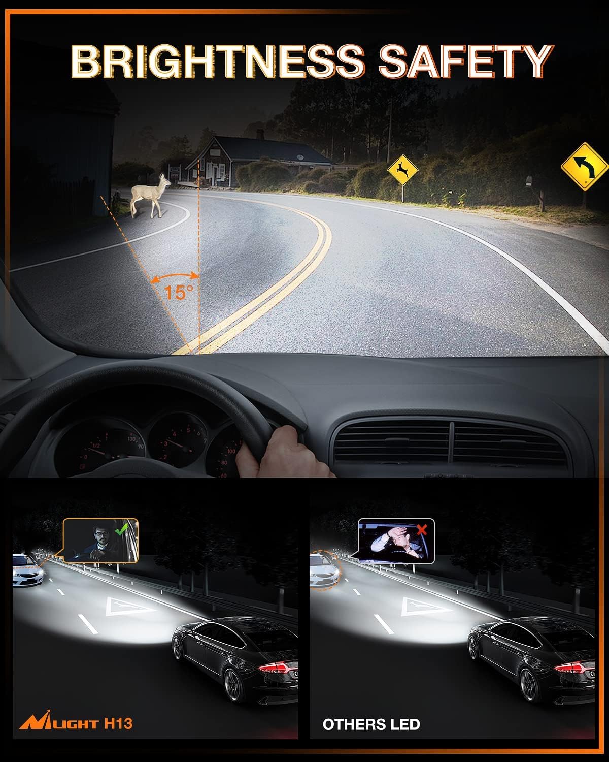 • 【Ideal Beam Pattern】 Nilight H9 LED headlight bulb enhances super focused beam pattern for optimal light shape and clearer visibility, no dark spots or shadow areas, no blinding or glare to oncoming drivers, which avoids driver distraction caused by scattered light problem to ensure driving safety, making it the optimal LEDs to replace your factory bulbs