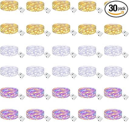 btfarm 30 Pack Fairy Lights Battery Operated [3 Modes], 7ft 20 Led Twinkle Lights String Lights Waterproof Bulk Small Mini Silver Wire for Christmas Mason Jars Wedding Table Centerpiece