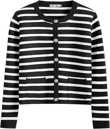 ANRABESS Women Striped Cardigan Sweaters Button Down Cropped Knit Lady Jackets Coat 2024 Fall Outfits Trendy Clothes