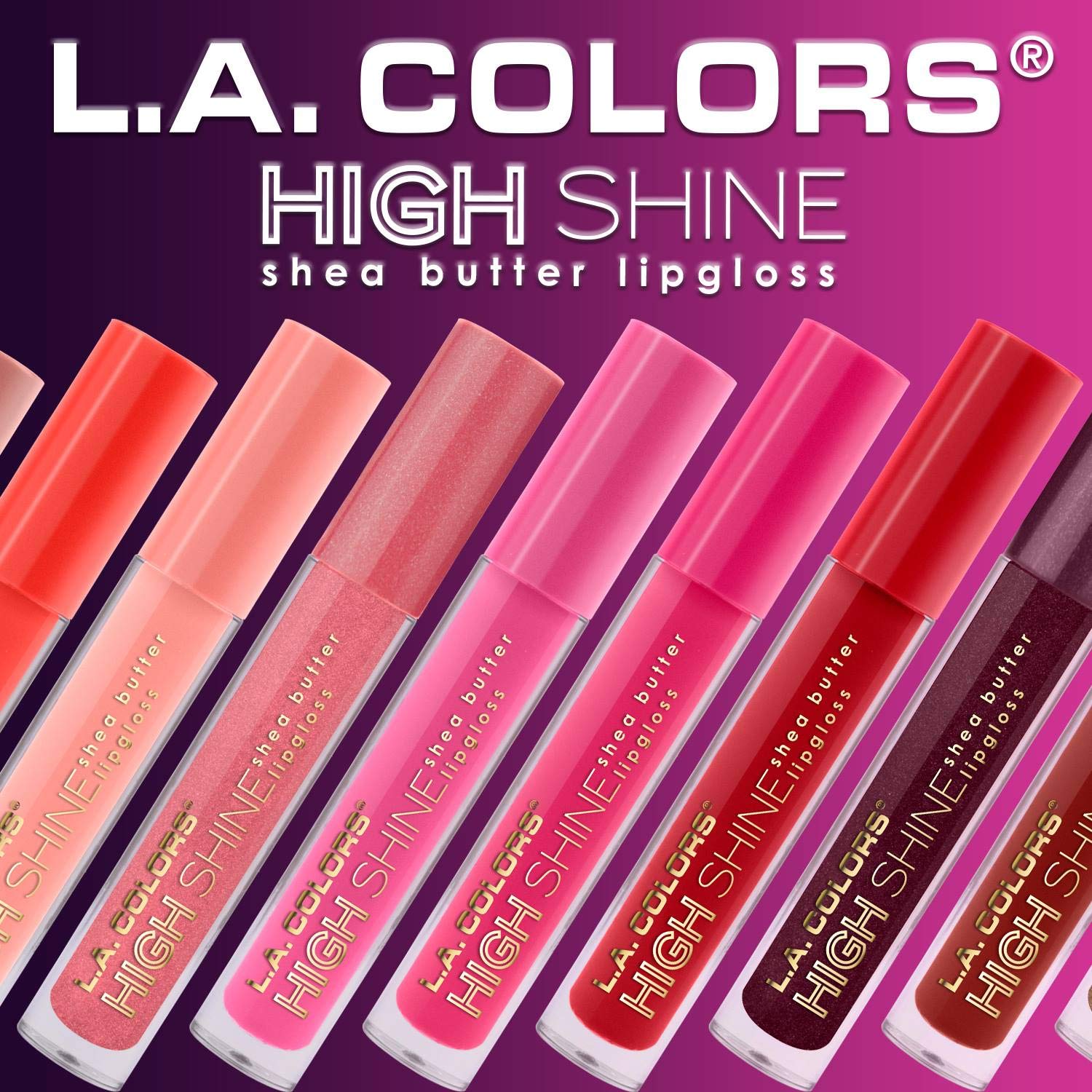 Discover luscious lips with intense color, irresistible shine and continuous moisture from L.A. COLORS High Shine Shea Butter Lip-gloss. Super shiny formula enriched with shea butter and vitamin E keeps lips soft with a non-sticky finish and a light vanilla scent. Available in a wide range of shades and finishes to drench lips in rich color and high shine!