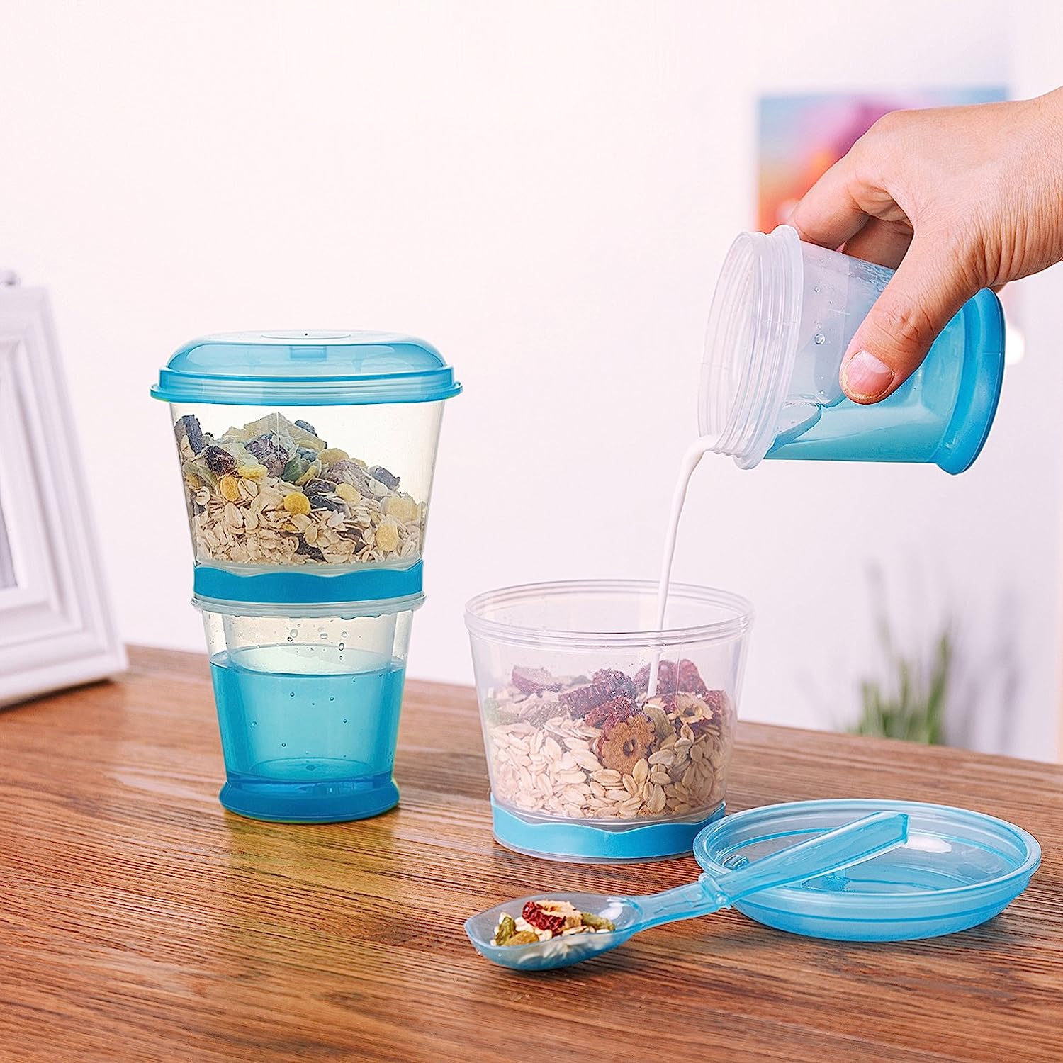 Cereal On The Go, Cup Container Breakfast Drink Milk Cups Portable Yogurt and Travel To-Go Food Containers Storage With Spoon(Blue)
