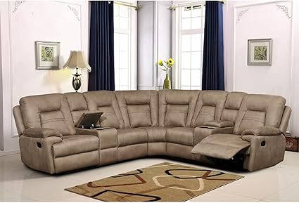 Betsy Furniture Large Microfiber Reclining Sectional Living Room Sofa in Latte 8038