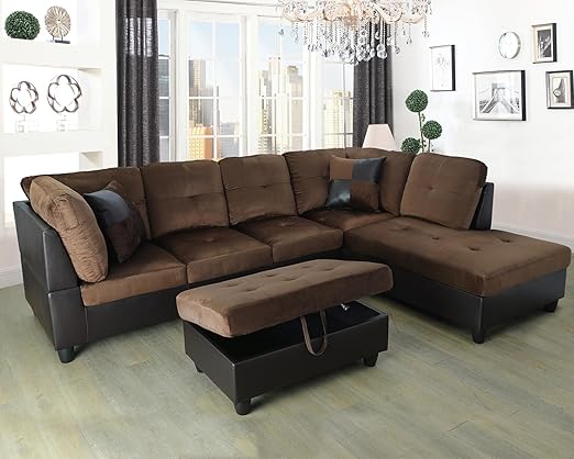 Brown Sectional Couch for Living Room Set, 105 Inch Sectional Sofa L Shaped Couch with Storage Ottoman/Microfiber Fabric/Facing Right Chaise