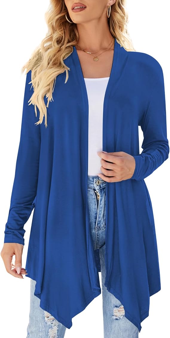 Women's Draped Front Open Cardigan Casual Long Sleeve Lightweight Cardigan Sweaters Duster