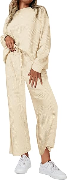 PRETTYGARDEN Women's 2 Piece Outfits Fall Casual Long Sleeve Pullover Tops and Wide Leg Pants Knitted Lounge Sets