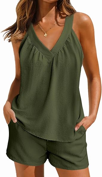 Ekouaer 2 Piece Lounge Sets for Women Soft Pajama V Neck Cami Pj Shorts Set with Pockets Cute Sleepwear Summer Outfits