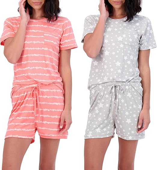 Real Essentials 4 Piece: Women‰۪s Short Sleeve Top with Shorts Pajama Set ‰ÛÒ Ultra-Soft Lounge & Sleepwear (Available In Plus)