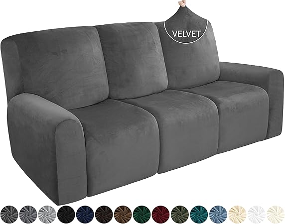 300GSM Luxury Velvet Recliner Couch Cover for 3 Cushion Couch Plush Fuzzy Soft Stretch Reclining Sofa Covers 3 Seater Set Washable 8-Piece Non Slip Furniture Slipcover (3 Seat, Dark Grey)