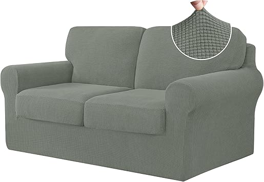 CHUN YI 5 Piece Stretch Loveseat Sofa Cover, 2 Seater Couch Slipcover with Two Separate Backrests and Cushions with Elastic Band, Checks Spandex Jacquard Fabric(Medium, Dove Gray)