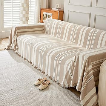 DREAMINGO Couch Cover Striped Khaki Couch Cover for 2 Cushion Couch Sofa Chenille Couch Covers for Dogs Washable Loveseat Covers Sectional Sofa Protector Living Room Couch Cover Blanket, 71"x118"