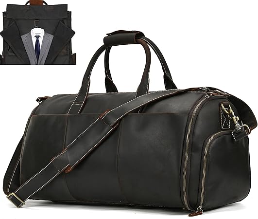Leather Garment Bag for Men, Convertible Carry on Garment Duffel Bag for Travel Weekender Bag 2 in 1 Hanging Suitcase Suit Bag, 2201 Dark Brown