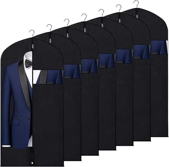SORON 43" Garment Bags, 7 Packs Garment Bags for Hanging Clothes, Env-friendly Breathable Suit Bag Clothes Cover for Storage Suits, shirts, T-shirts and Jackets, Suitable for Adults and Children