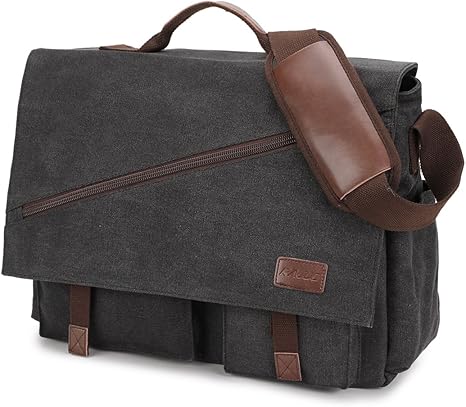 Messenger Bag for Men, Water Resistant Canvas Satchel 14 15.6 17 Inch Laptop Briefcases Business Shoulder Bag by RAVUO