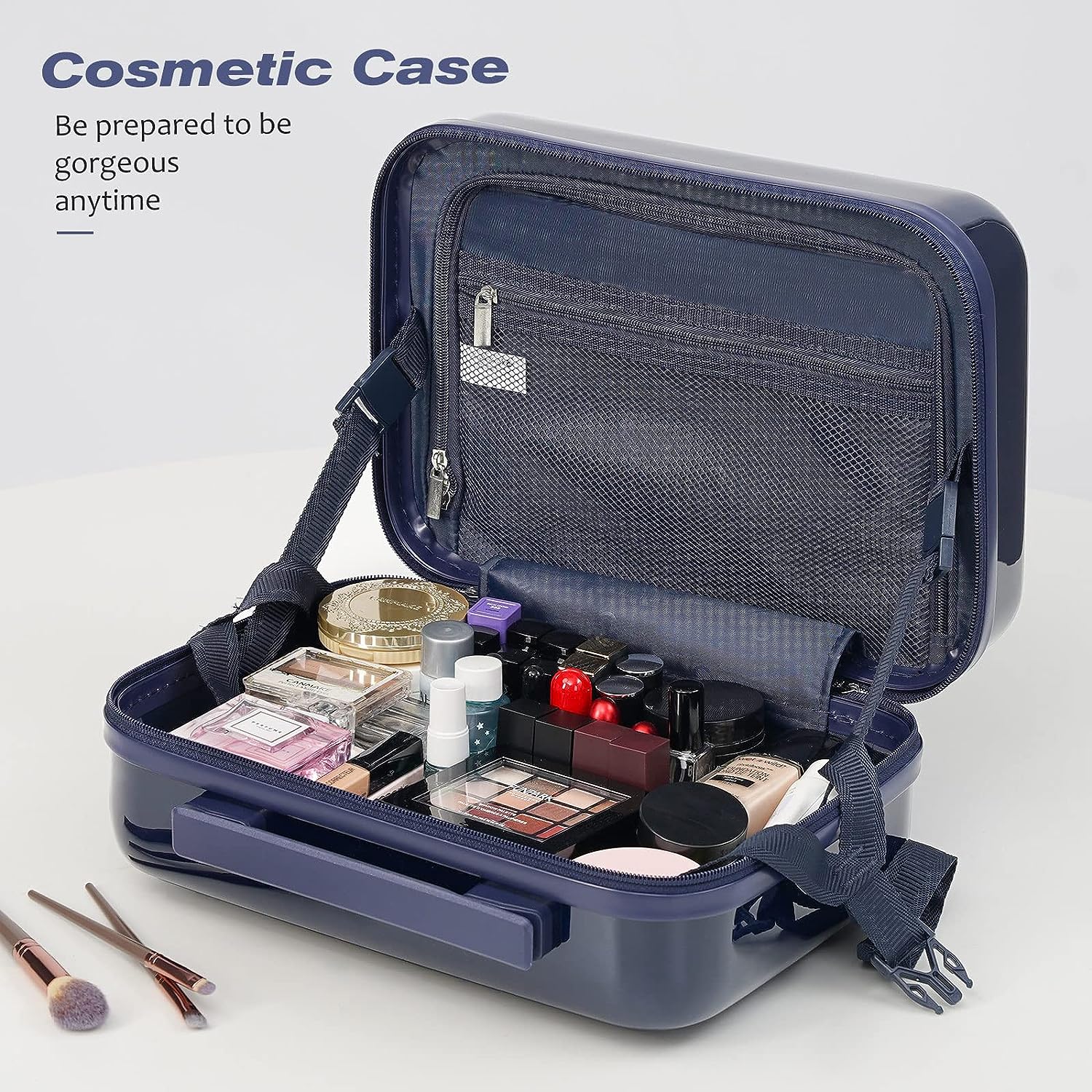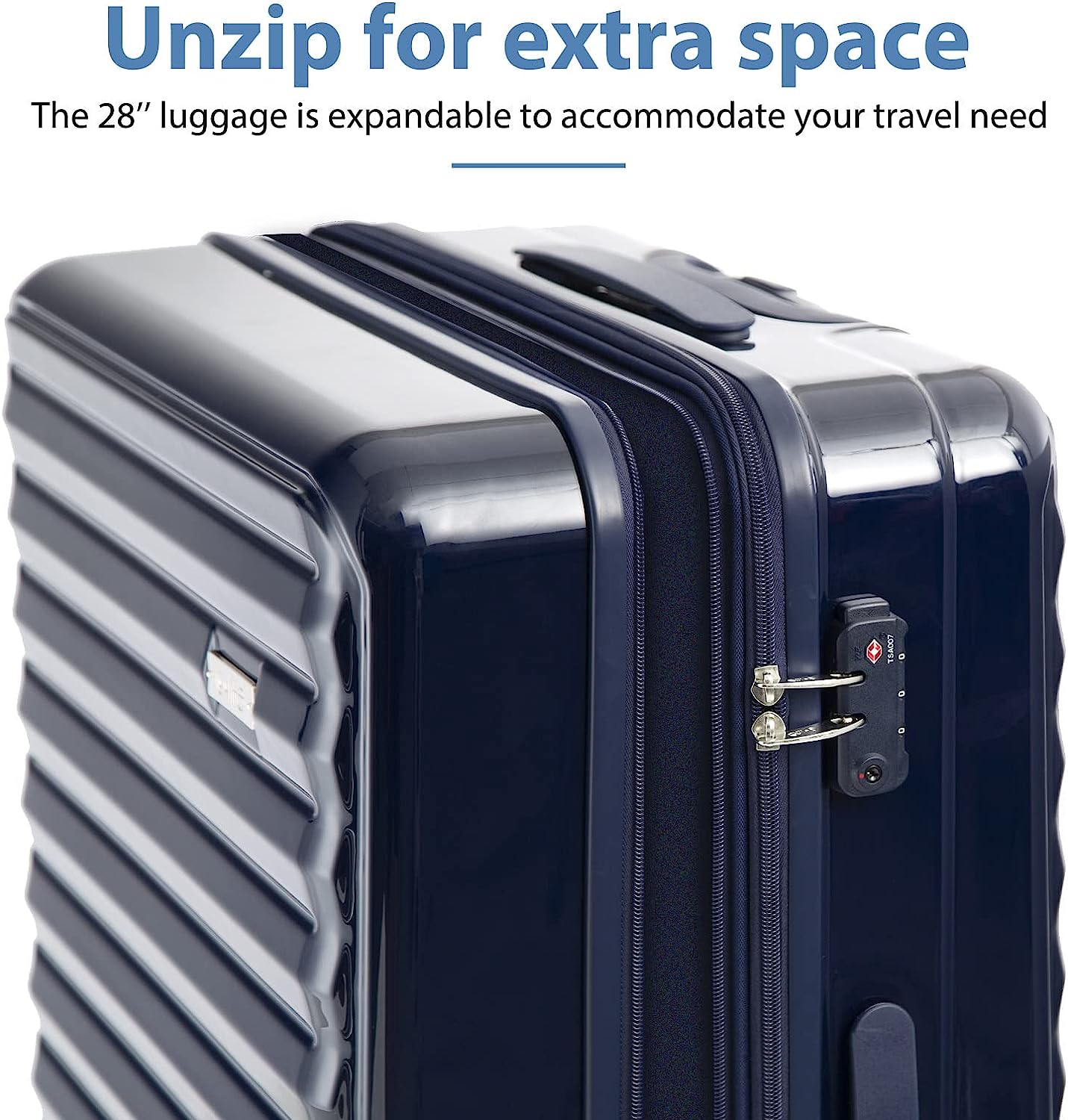 • The 4 piece set accommodates different packing needs: the 13 inch cosmetic case works well to store your toiletries, the 20 inch carry-on is perfect for overhead bins, the 24 inch luggage is ideal for those who want more space without being too bulky, and the 28 inch expandable option gives you even more space to pack.