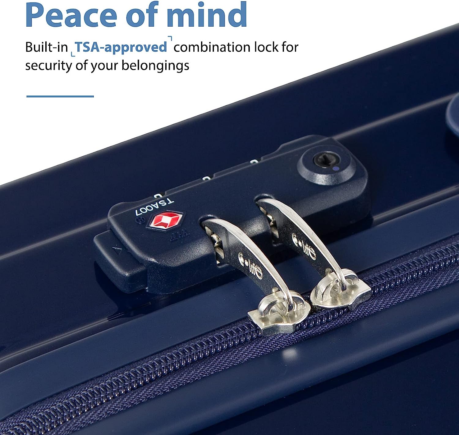 • With premium zippers and tough interior divider panels, the luggage is both secure and organized. Plus, its built-in TSA lock ensures that security officers can safely check the luggage when needed.