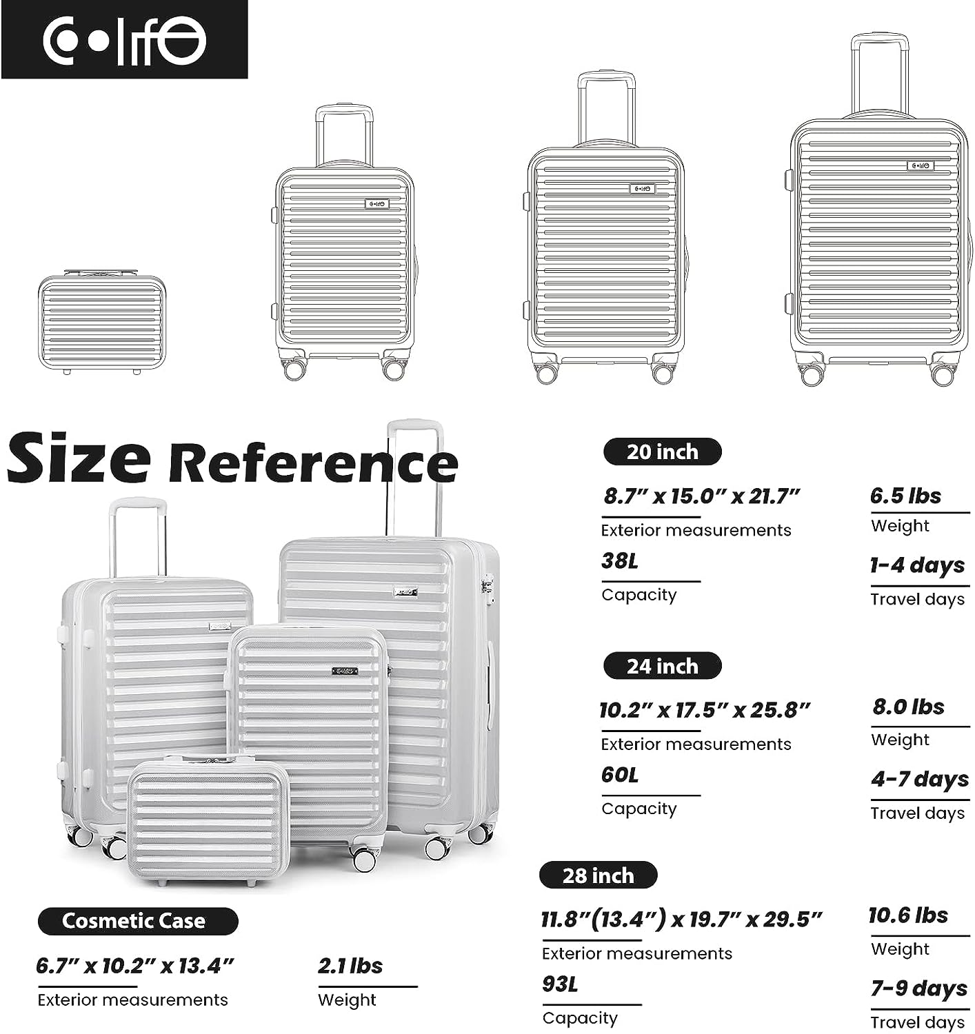 Coolife Luggage Suitcase 4 Piece Set expandable (only 28”) ABS+PC Spinner suitcase with TSA Lock carry on 20in 24in 28in