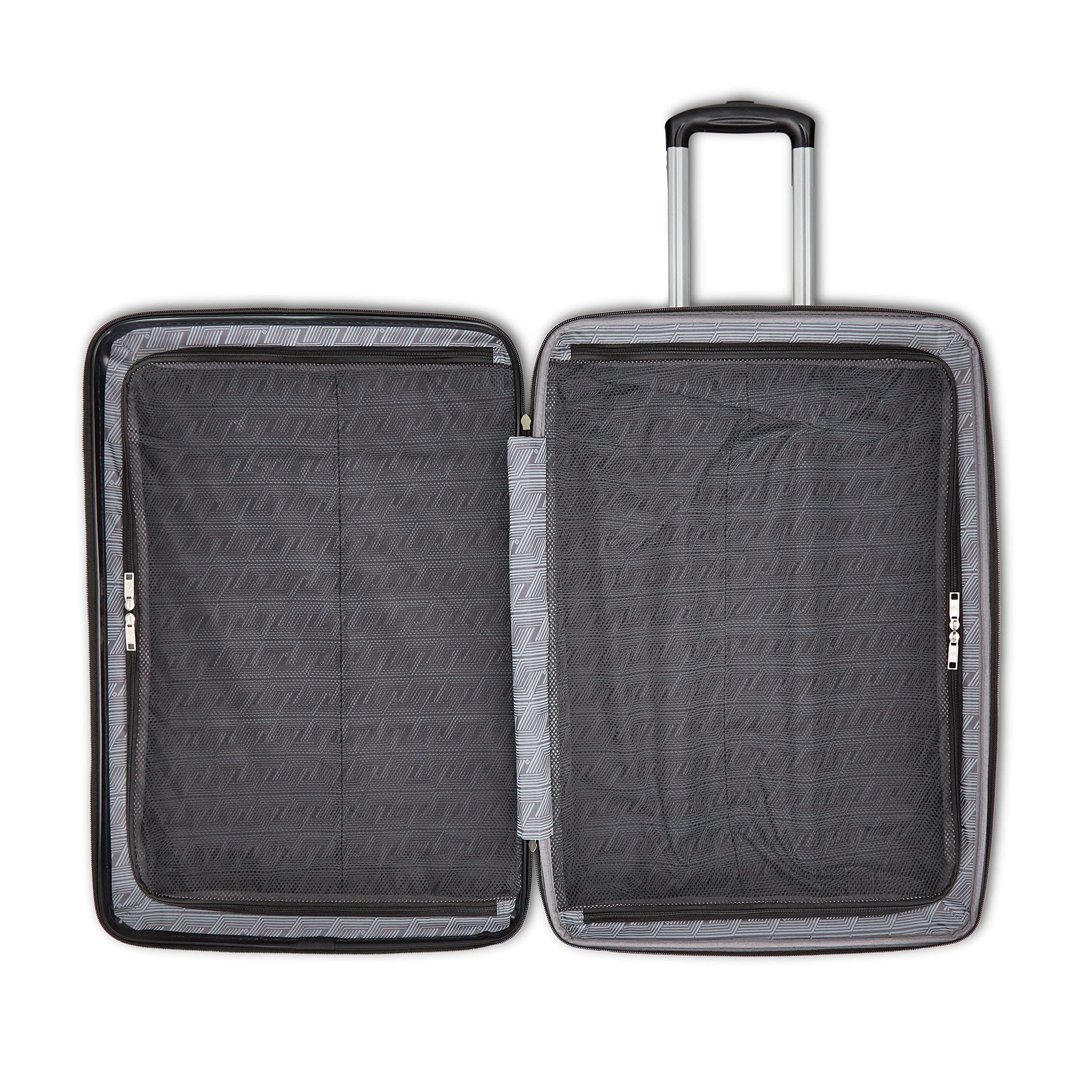Details: Modern organic pattern aesthetic in an overall boxy construction design to maximize every inch of the case for extreme packing capacity. Industrial graded metal handle system tubes with ergonomic carry grip for enriched confidence and user experience. Refined twill-alike texture with a superior metallic finish. APCRB™ shell material for maximum strength in quality, weight, performance and fatigue resistance