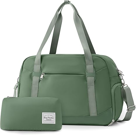 LONG VACATION Women's Travel Duffel Bag with Toiletry Bag, Sports Gym Bag Weekendeer Carry-on Tote with Shoe Compartment and Wet Pocket, Yoga Bag Fit 15.6inch Laptop (OLIVE GREEN, 18-inch)
