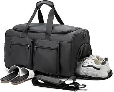 Seyfocnia Gym Bag, Weekender Bag for Men Women Travel Duffel Bag with Wet Pocket Overnight Bag with Shoe Compartment Carry On Travel Bag Gym Duffle Bag Sports Bag-Black
