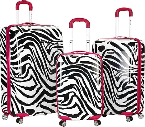 Rockland Safari Hardside Spinner Wheel Luggage, PINKZEBRA, 3-Piece Set (20/24/28)