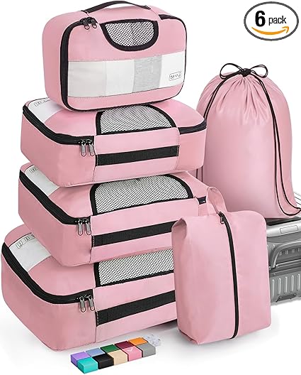 Veken 6 Set Packing Cubes for Suitcases, Travel Organizer Bags in 4 Sizes for Carry on Luggage and Essentials (Extra Large, Large, Medium, Small)
