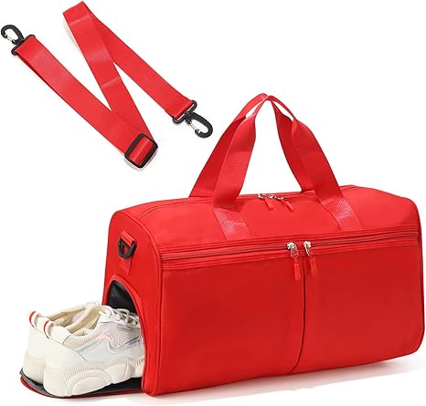 Gym Bag with Shoe Compartment, Weekender Bags for Women, Overnight Bag with Wet Pocket for Luggage Travel Workout Yoga, Red