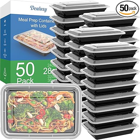 50 Pack (100-Piece) 28 oz Meal Prep Containers Reusable with Lids, Sturdy Leakproof & Food Safe, Microwave, Freezer, Dishwasher Safe Food Prep Containers, To Go Take Out Plastic Food Storage