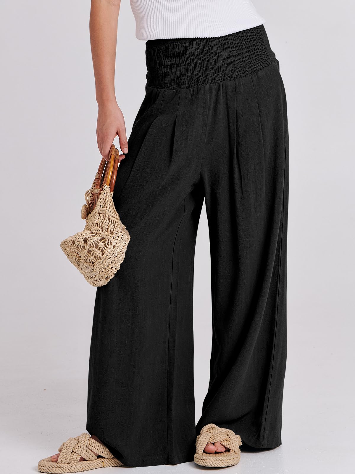 • Feature - Smocked high waist, wide leg, loose fit lounge pants with pockets, linen beach pants for women cover up, flowy dressy pants comfy and chic