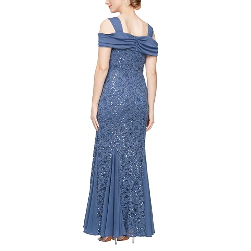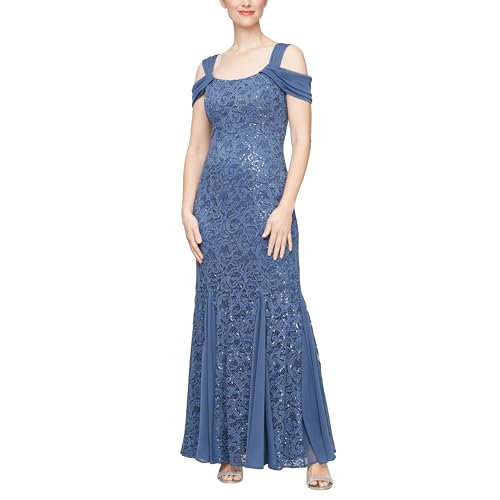 Alex Evenings Women's Long Cold Shoulder Dress (Petite and Regular Sizes), Wedgewood Lace