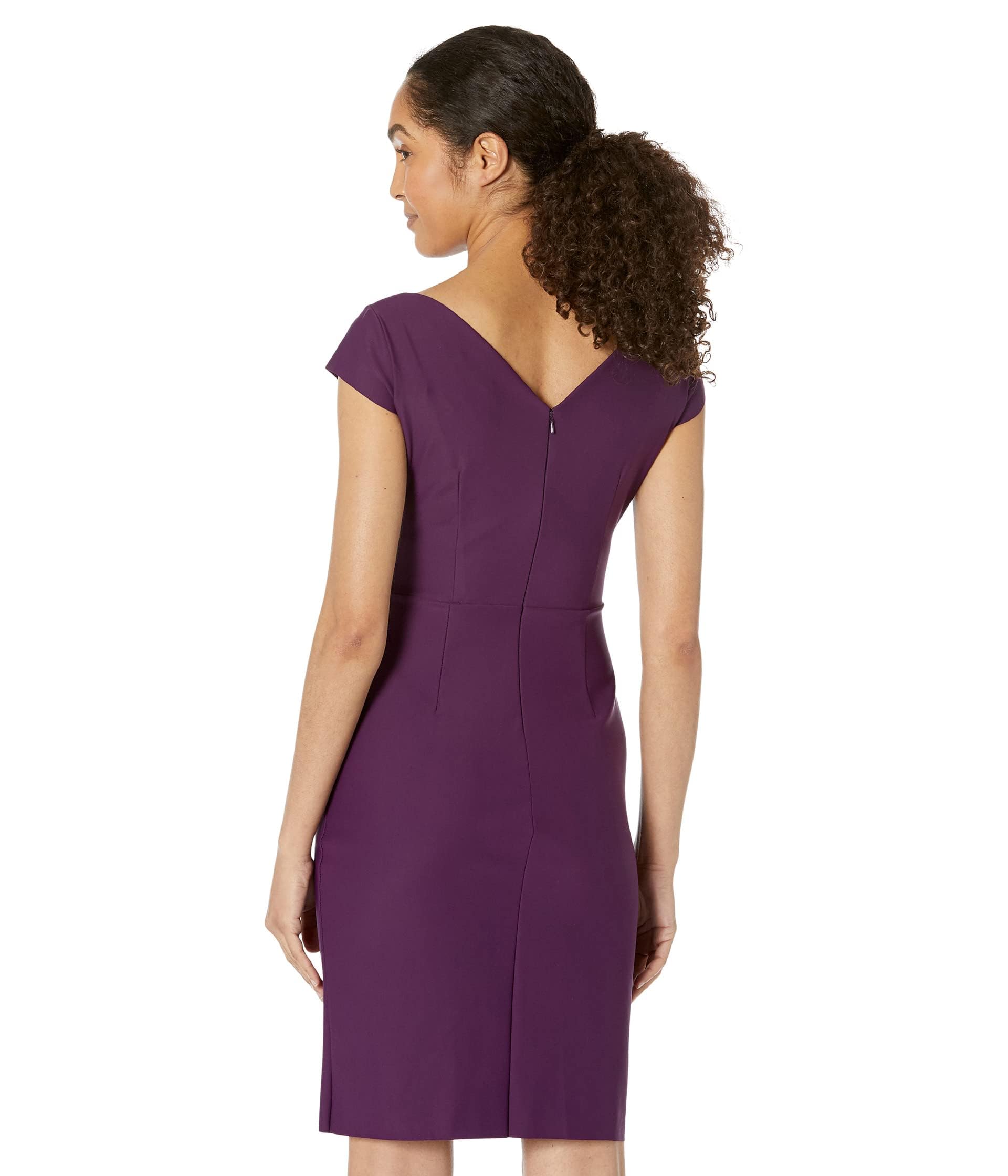 Alex Evenings Women's Short Slimming Cap Sleeve Dress with Surplice Neckline, Summer Plum, 8