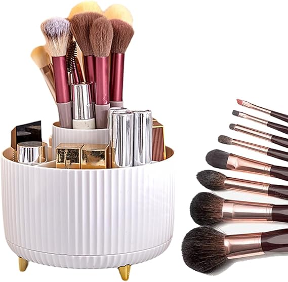 360«� Rotating Desktop Makeup Brushes Organizer, 2024 New Makeup Brush Holder Organize Multi-angle Rotating Makeup Organizer, 5 Slot Make up Brushes Cup for Cosmetics (White)