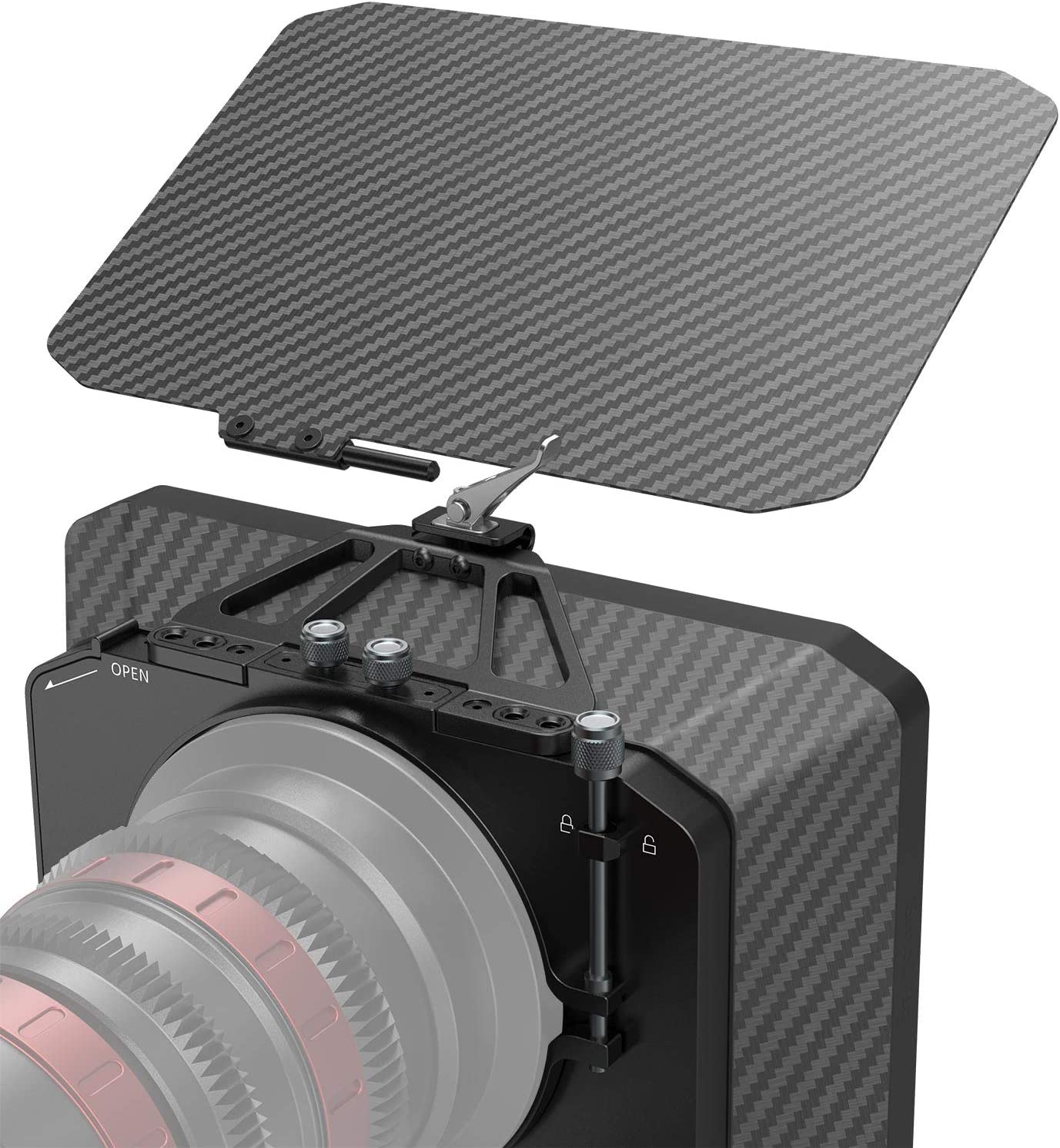 • 【CARBON FIBER BOX & TOP FLAG】SmallRig Lightweight Matte Box 2660 is designed to block the sun or other light source in order to prevent glare and lens flare, with interchangeable mounting systems that suits cinema or DSLR lenses. The included carbon fiber top flag helps block veiling glare or bright reflections from striking your lens, and it can be folded down to cover the front of the matte box and provide protection to the front of your lens.