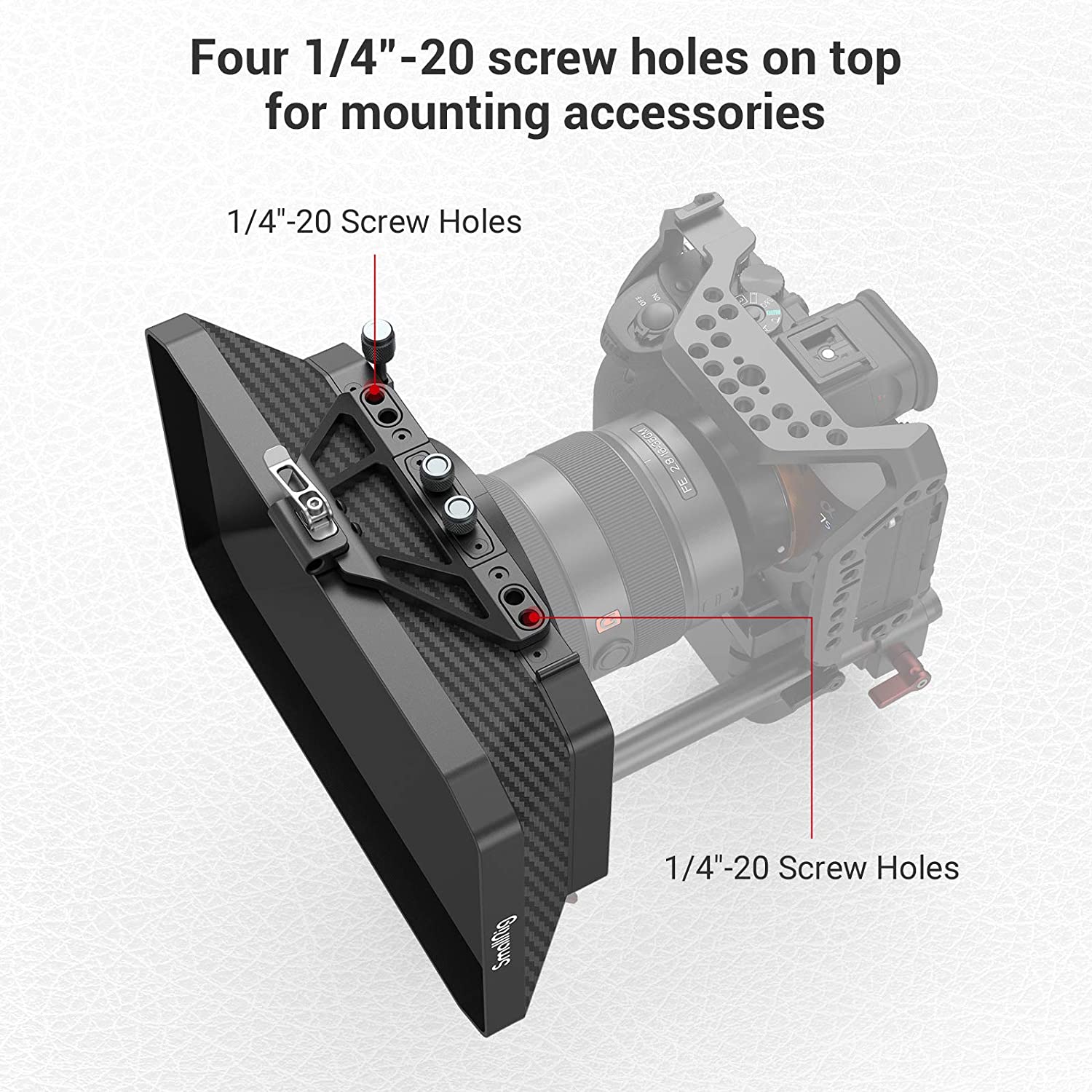 • 【FOUR 1/4"-20 ACCESSORY THREADS】Weights Only 238g without the top flag, SmallRig 2660 suits small mirrorless or DSLR cameras and is made from durable but lightweight carbon fiber material. There are four 1/4"-20 threads on top of the matte box that allow you to mount additional accessories.