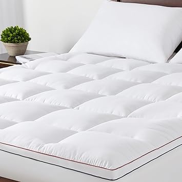 JKMAX Mattress Topper Queen - Pillow Top Mattress Topper Pad Extra Thick Cover with Deep Pocket - Mattress Topper for Back Pain - 3D Snow Down Alternative Plush Mattress Topper (Queen, White)