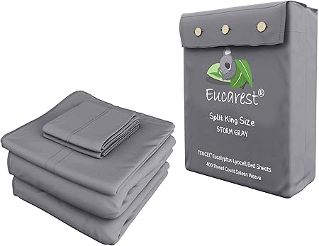 100% Eucalyptus Tencel Bed Sheets | Split King | Organic | Ultra Soft | Cooling for Hot Sleepers | Hypoallergenic | Thermal Regulating | Deep Pocket | Fits 18" Mattress - Storm Gray