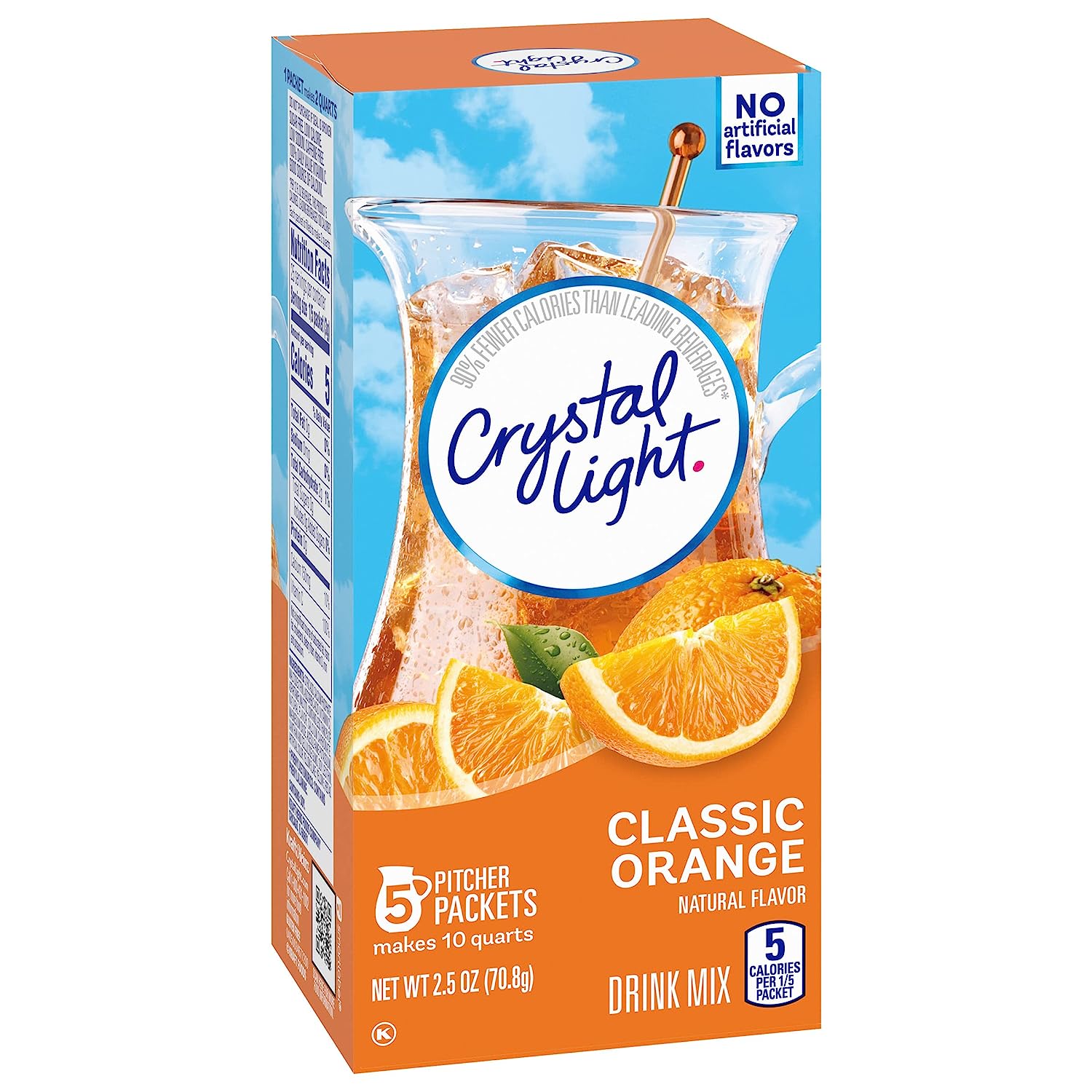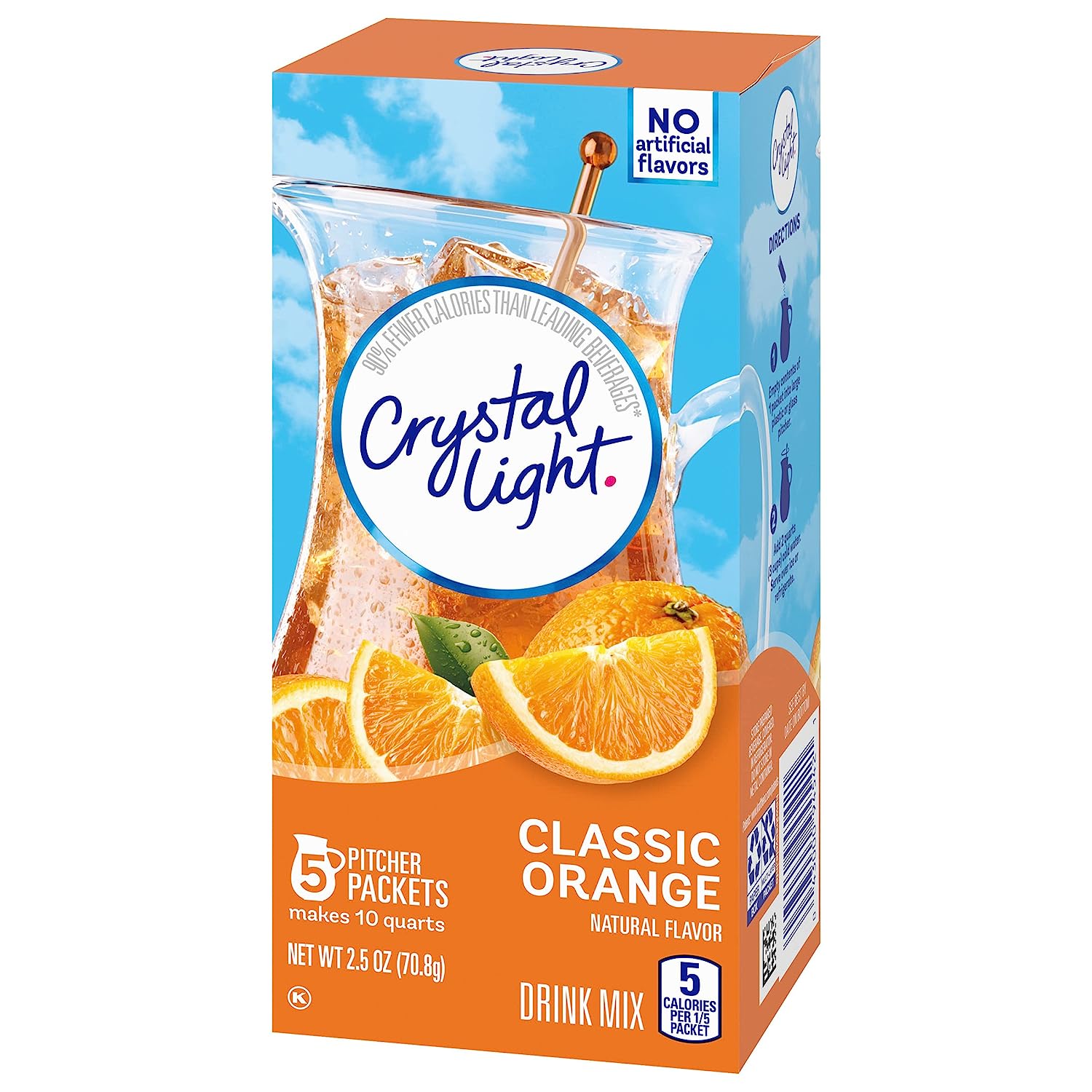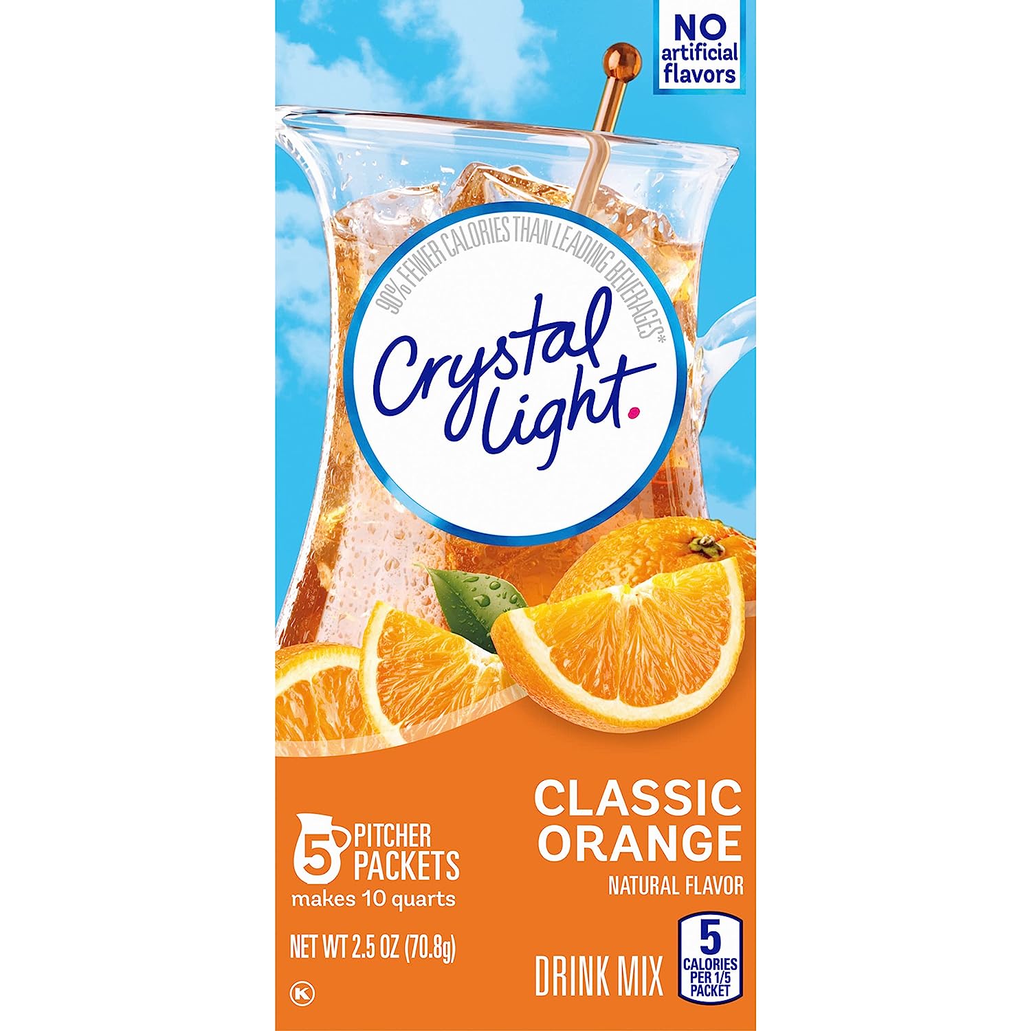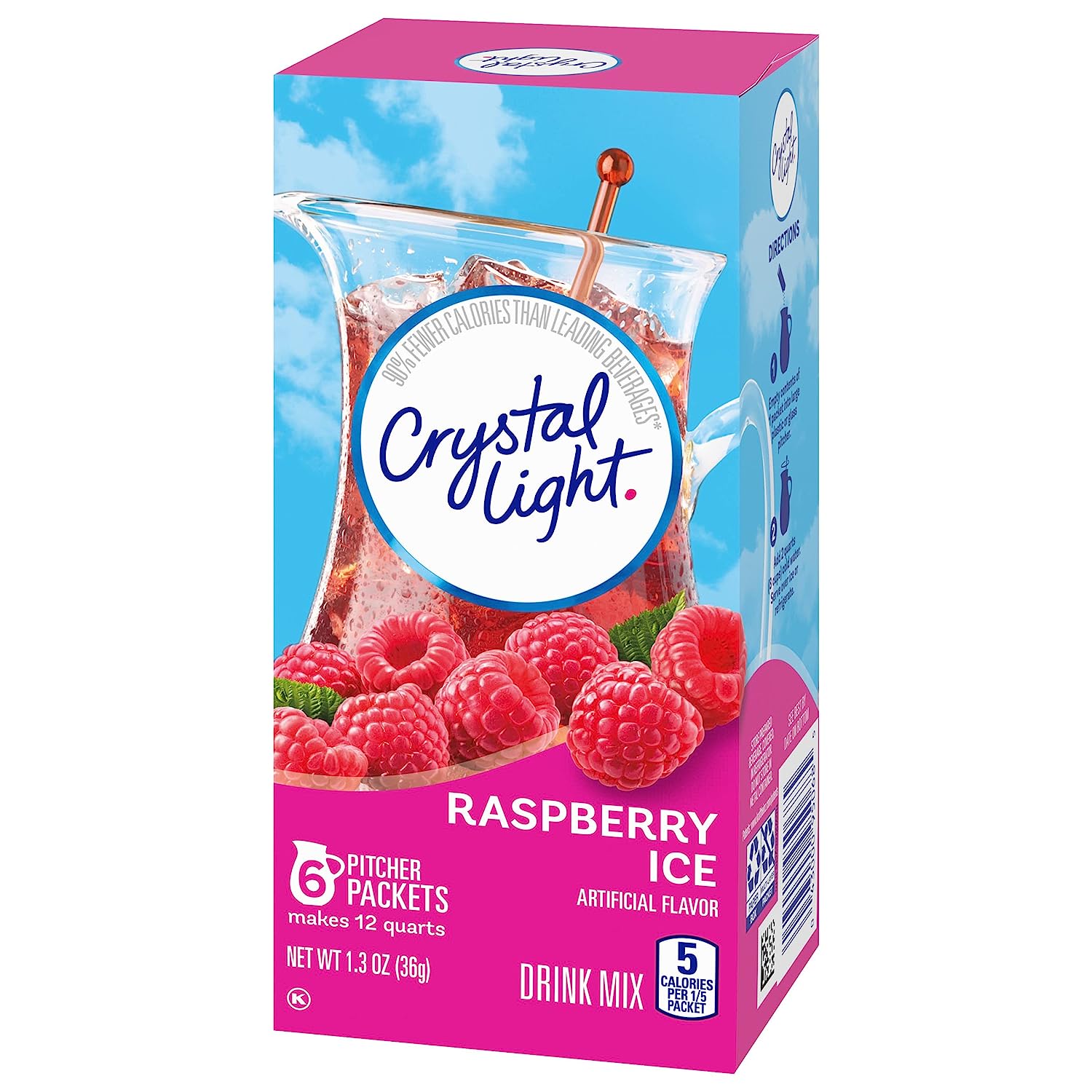 Crystal Light Artificially Flavored Fruit Punch Powdered Drink Mix is a refreshing beverage you can enjoy at any time of day. With zero grams of sugar and only 5 calories per serving, Crystal Light is a sweet alternative to juice and soda and has 90 percent fewer calories than leading beverages (this product 5 calories, leading beverages 70 calories), so you don't have to choose between taste and calories. It offers a classic fruit punch flavor for a refreshing taste. Each pitcher packet of powdered fruit punch mix in these 6 count canisters are perfectly portioned to make 2 quarts or 1 pitcher of Crystal Light, so there's plenty to share with family and friends. Simply mix one packet of fruit punch powder with 8 cups or 2 quarts of water, stir, and enjoy! All the flavor and only 5 calories... just the way you like it.