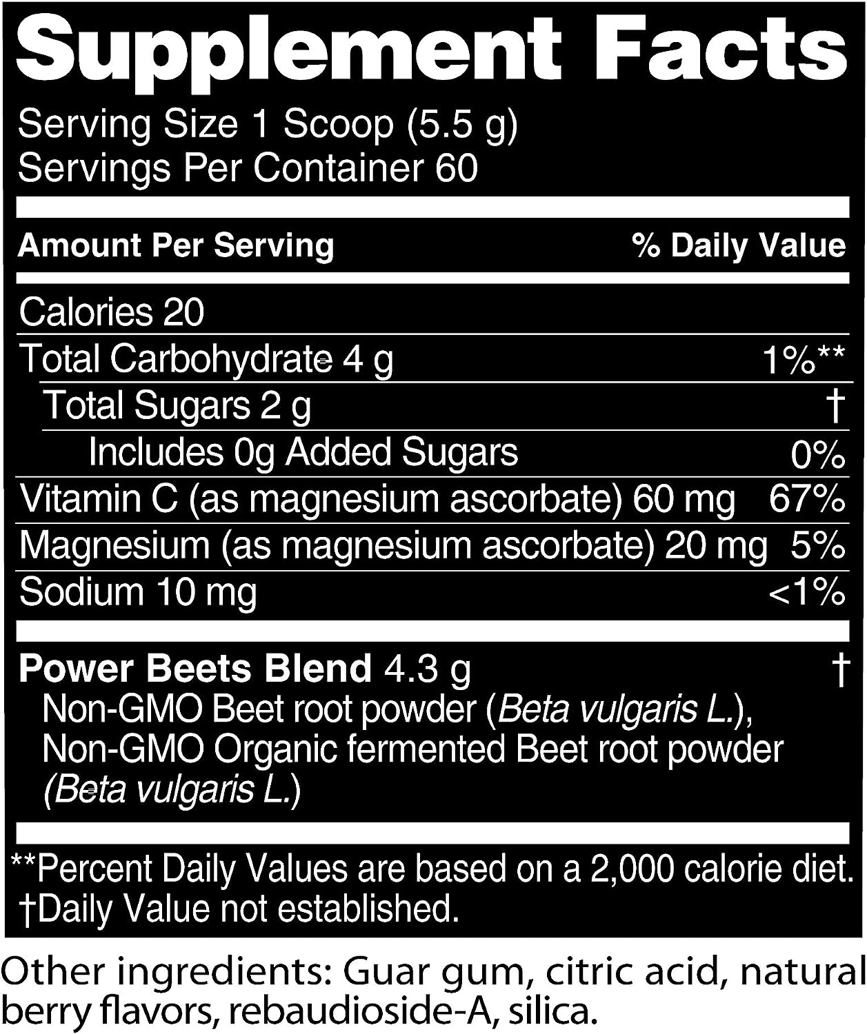 You don’t have to use expensive beet shots, eat pounds of beets, or even try to stomach those horrible tasking beet powders anymore. With the mouth-watering delicious taste of acai berry pomegranate PowerBeets™ in a super-concentrated formula you’ll be ahead of the superfood game - fast! Super-concentrated PowerBeets™ has two times the servings versus the leading competitor and delivers a powerful punch. Boost your circulation, support your healthy blood pressure levels, and ignite your natural energy today with PowerBeets™*!