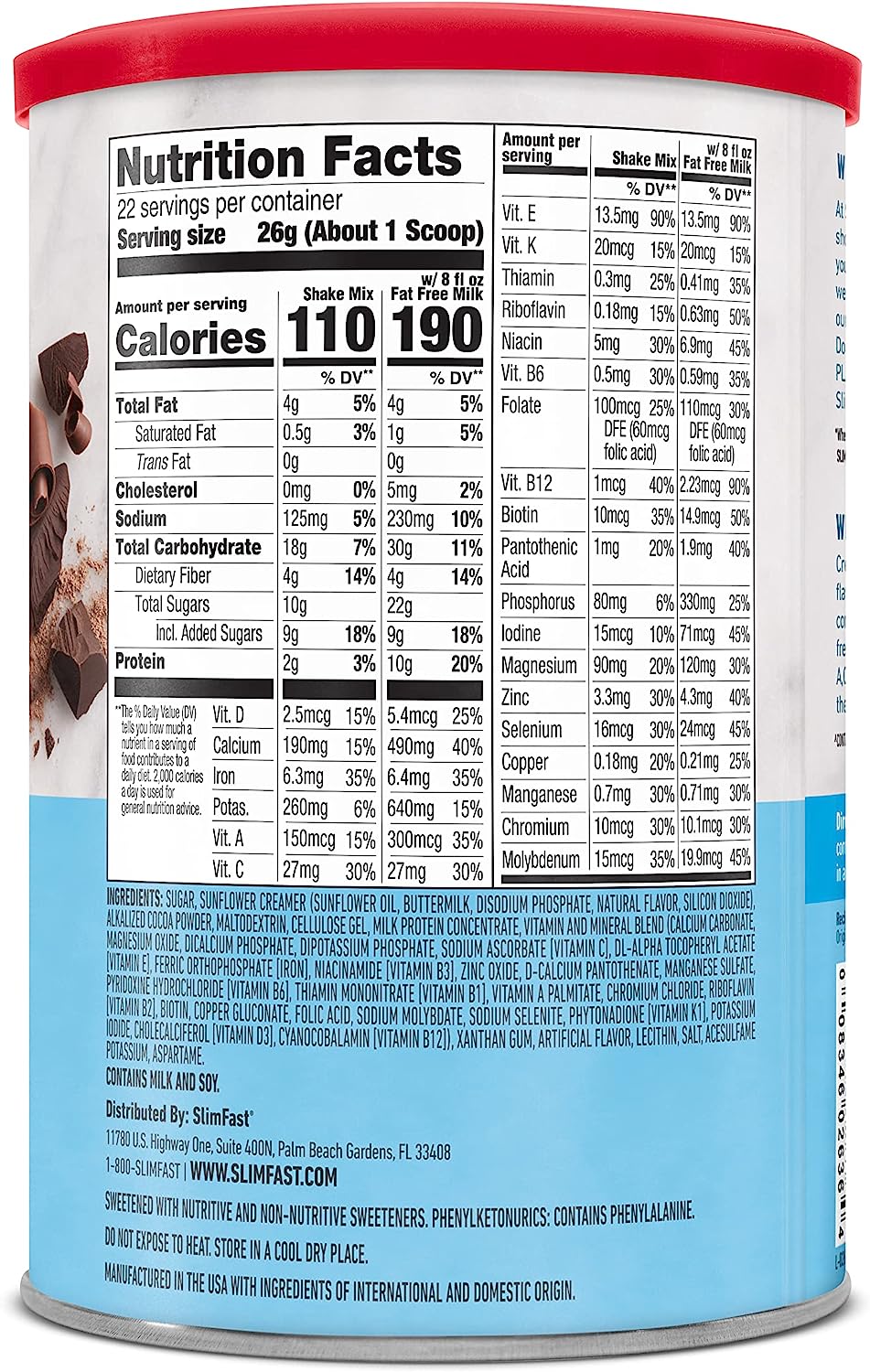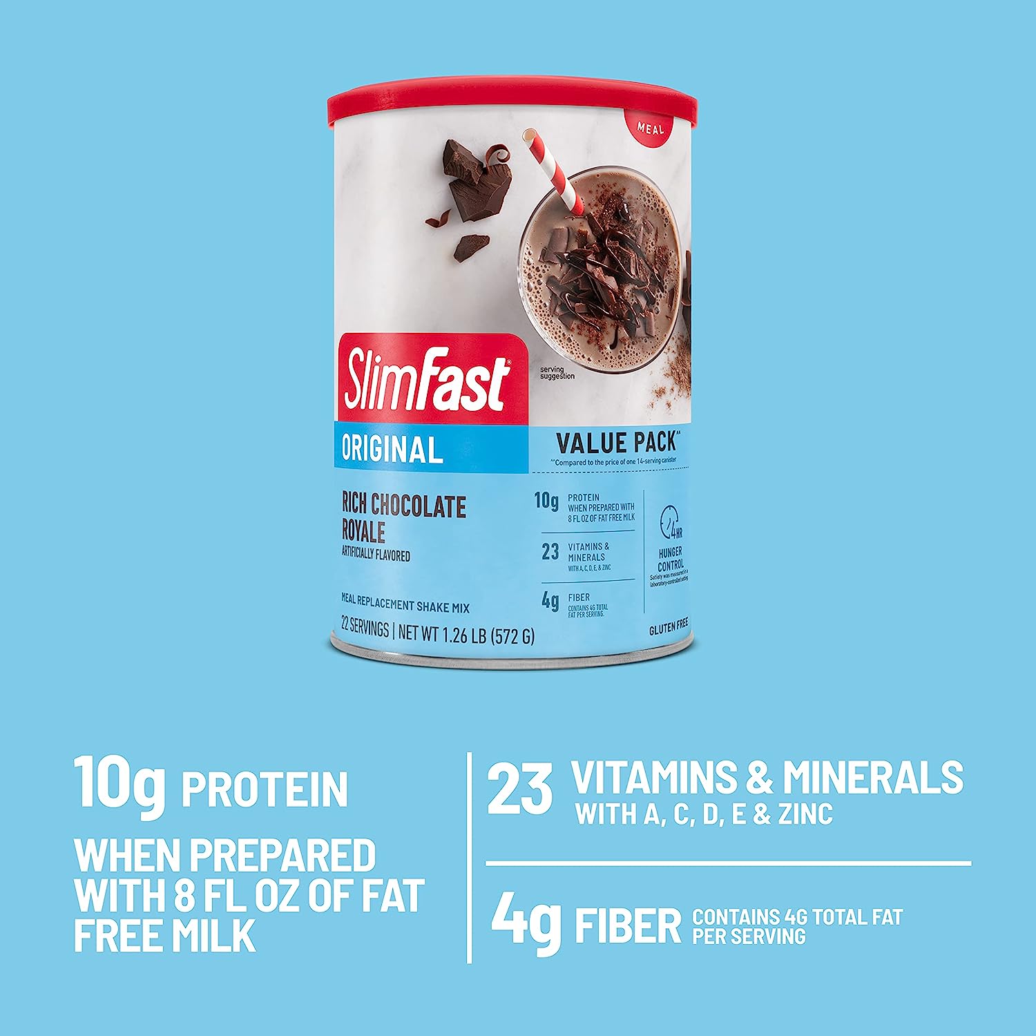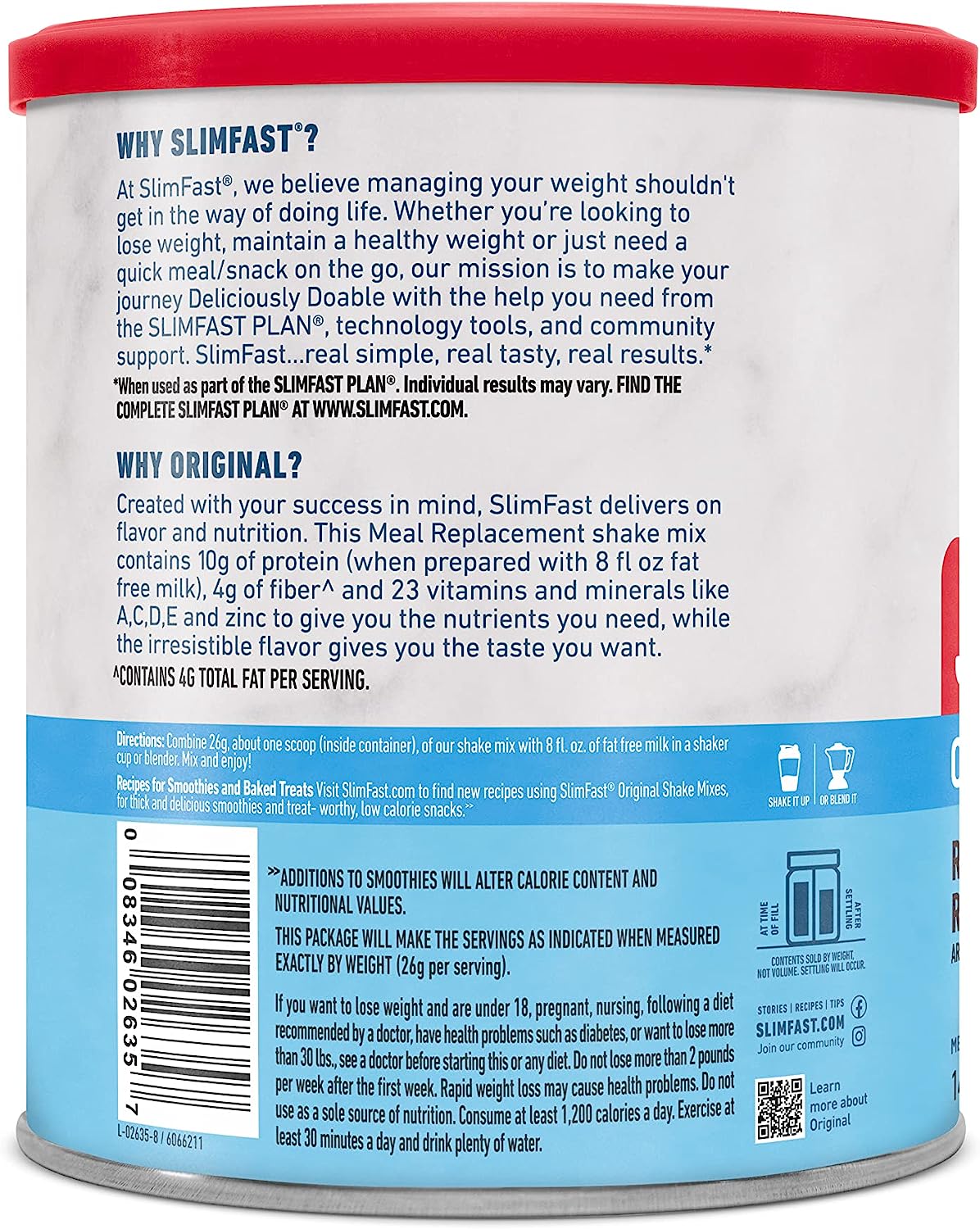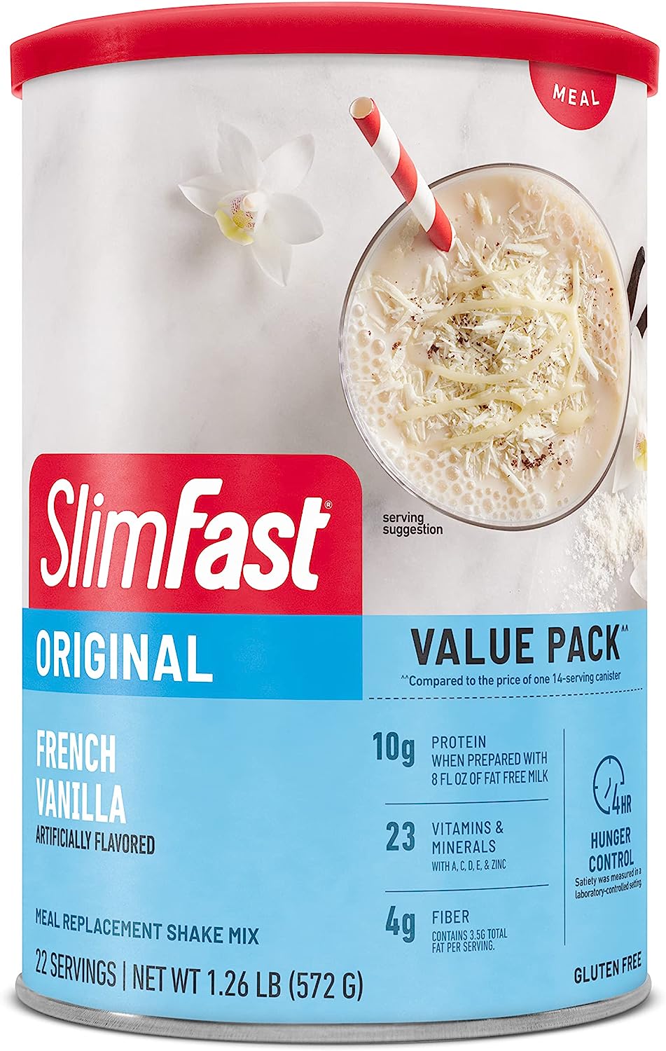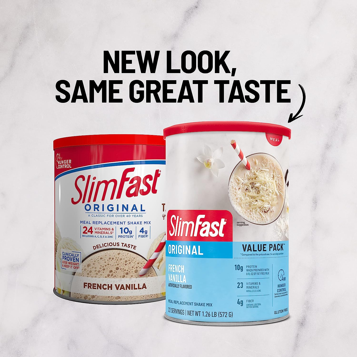 The French know a thing or two about sweet indulgence. This creamy, vanilla-forward SlimFast Original French Vanilla shake mix generously provides 10g of filling protein for up to four hours of hunger control. With just 4g of fiber and 24 vitamins and minerals, dive into this classic flavor without compromise. Enjoy it blended with milk or added to your favorite smoothie recipe. Part of the clinically proven SlimFast Plan, these shakes make weight loss as easy as 1-2-3. Enjoy one sensible meal, two SlimFast meal replacements, and three snacks. The SlimFast Plan is clinically proven to help you lose weight fast and keep it off. **Based on clinical studies of the overall SlimFast 1-2-3 Plan (a calorie-controlled diet, regular exercise and plenty of fluids), demonstrating fast and sustained weight loss. Individual results may vary. Average weight loss is 1-2 lbs per week. Check with your doctor if nursing, pregnant, under 18 or following a doctor prescribed diet.