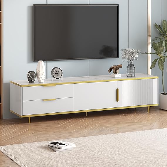 Amposei Modern TV Stand for up to 70-Inch, Entertainment Center Media Console Storage Cabinet with Drawers, Home Furniture for Living Room, White